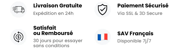 Garantie 30 jours : Satisfaite ou remboursée, sans questions posées. Service client français à votre écoute.